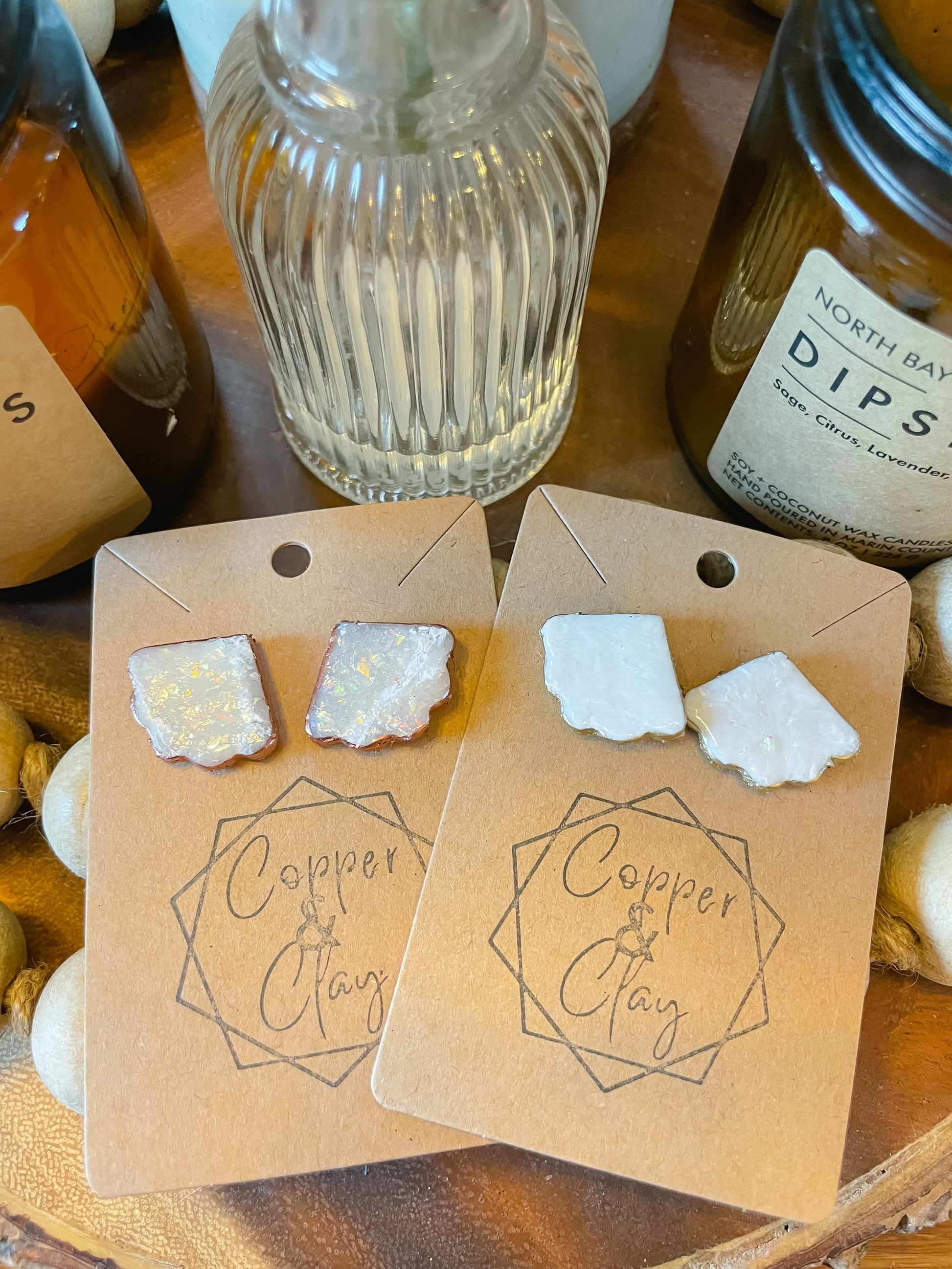 Gold or copper trim. All findings are nickel-free and hypoallergenic.